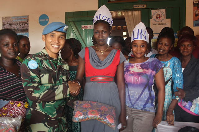 perdamaian PBB, membagikan 250 Baju Batik Khas Indonesia kepada warga lokal di wilayah PK-6 Bangui, Afrika