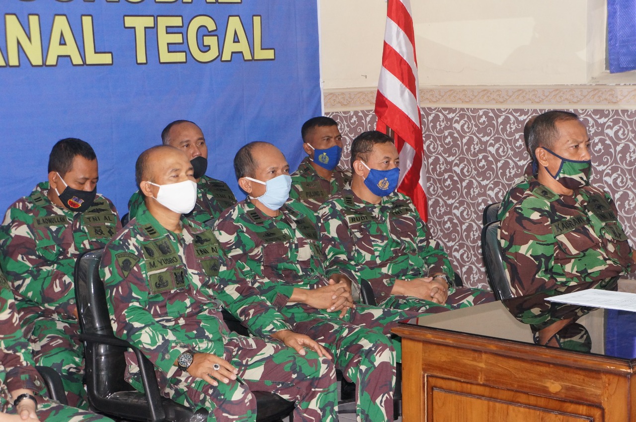 Tegal (LawuPost.Com) Bertempat di ruang Puskodal Gedung Soenar Sura Putera Mako Lanal Tegal dilaksanakan Acara ViCon(Video Conference) Dalam rangka giat Webinar Kodam lV Diponegoro dengan tema ''Optimalisasi Protokol kesehatan menuju masyarakat produktif dan aman ". Kegiatan ini di ikuti jajaran Lanal Lanal dan Instansi Polri di wilayah Kodam lV Diponegoro, termasuk Lanal Tegal. Video Conference ini di pimpin Kasdam lV Diponegoro Brigjen TNI Widi Prasetijono. Hadir dalam Vicon Mako Lanal Tegal : Palaksa Lanal Tegal Mayor Laut ( P) Kadrawi, S.H, Ka Akun Lanal Tegal Kapten Laut (S) Rudy Sutardi, Pasops Lanal Tegal Kapten Laut (P) Agus Purwadi, Pasintel Lanal Tegal Kapten Laut (KH) Mulyadi, Pasminlog Lanal Tegal Kapten Laut (T) M.Yusro, Ka Bp Lanal Tegal Lettu Laut(KW/W) Ririn Priska, S.Apt, Kasatbek Lanal tegal Lettu laut(S) M. Aounulloh, Dansatma Lanal Tegal Lettu Laut( P) Menot Kasiono, dan Para Danposal Mako Lanal Tegal.